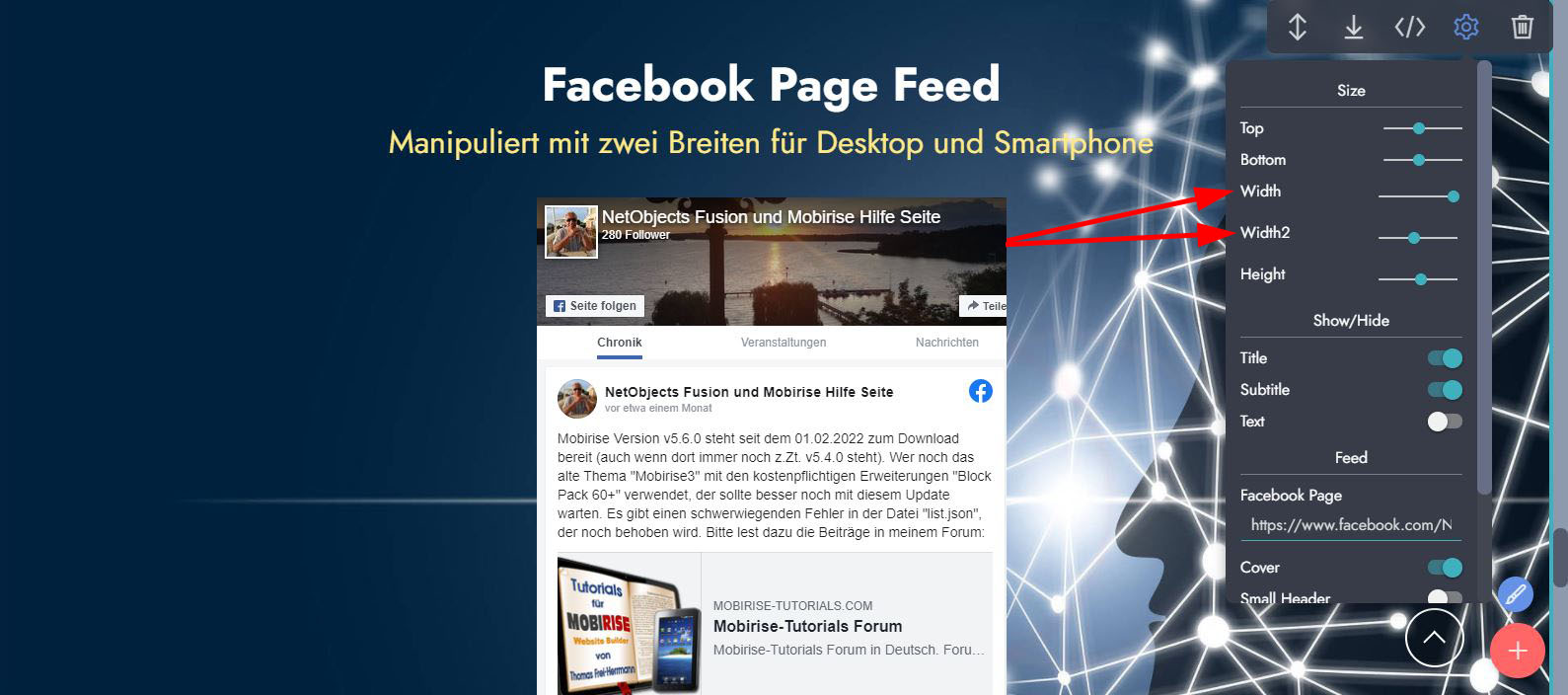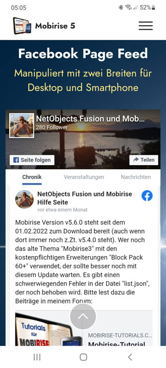 ... nur mal aus Spaß versucht den Facebook-Block von Mobirise etwas zu manipulieren
