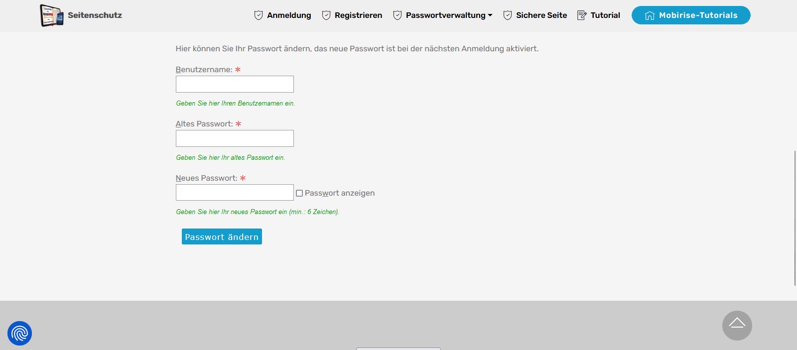 https://www.mobirise-tutorials.com/Seitenschutz/