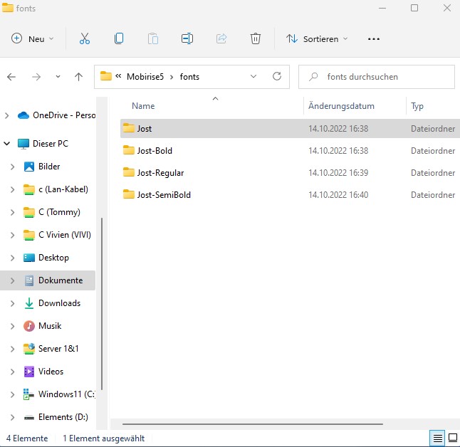 ... mit diesen Font-Weights - nur im obersten Verzeichnis "Jost" - und gleich mit angepasster CSS-Datei mit dabei: