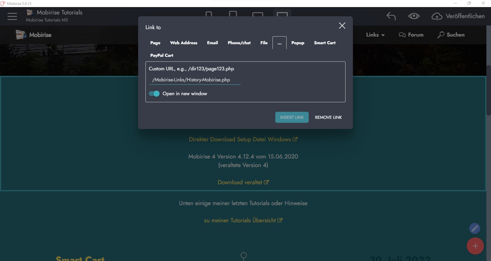 Ich muss aber auf meinen Tutorial-Seiten, insbesondere auf der Startseite und der Navi dieses Projektes jede Menge Links zu Mobirise-Seiten, wie z.B. dem Software-Download, dem Hilfe-Center oder dem Gesamtpaket setzen. Geht nicht :(