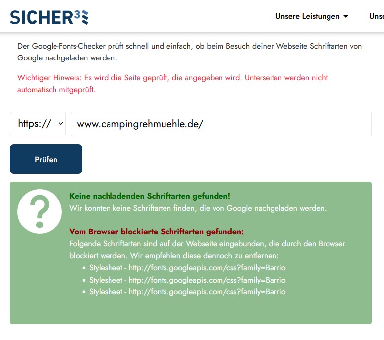 Google Fonts ist nicht DSGVO-konform eingebunden.