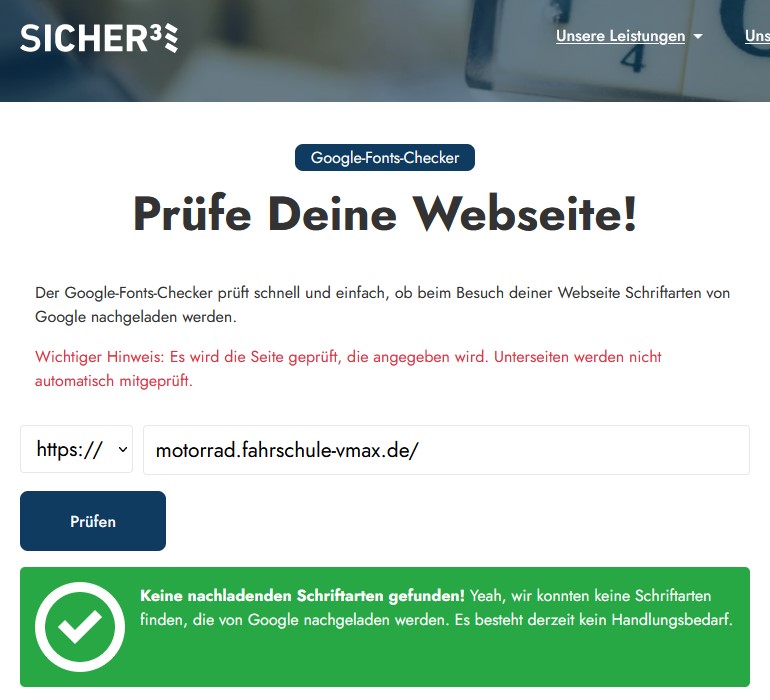 Deine Seite müsste aber jetzt jeden Test eines "Google Font Checkers" bestehen, solange Du kein YouTube-Video sondern ein Foto im Block gewählt hast.
