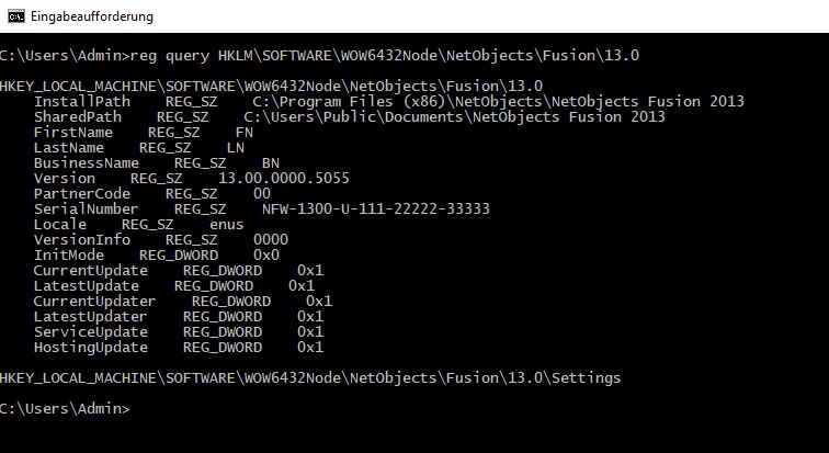 In der Registry unter "Computer\HKEY_LOCAL_MACHINE\SOFTWARE\WOW6432Node\NetObjects\Fusion\13.0" auch nachsehen.
