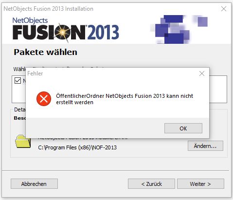 Selbst auf ein ganz neues Verzeichnis läßt sich NOF 2013 nicht installieren.
