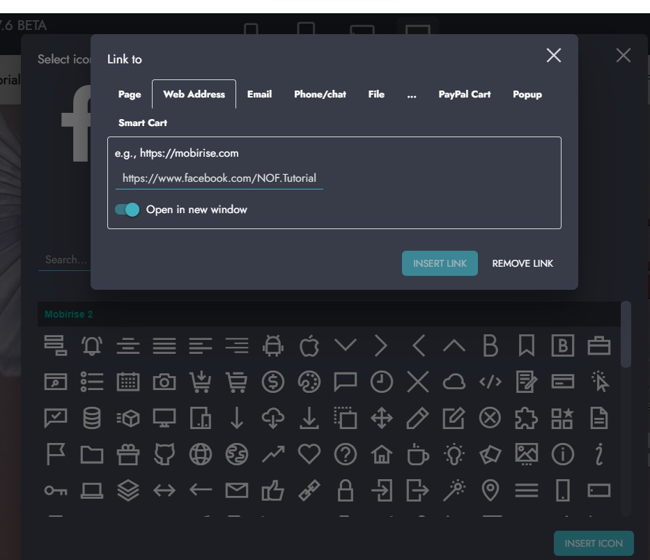 Weiterhin ist das Logo übrigens auch noch zu "Mobirise" verlinkt. Du musst dem Logo dann den internen Link zu z.B. Deiner Startseite (index.html) geben oder diesen ganz entfernen. Mobirise verlinkt beispielhaft solche Stellen immer zu seinen Seiten, die muss man grundsätzlich immer ändern.