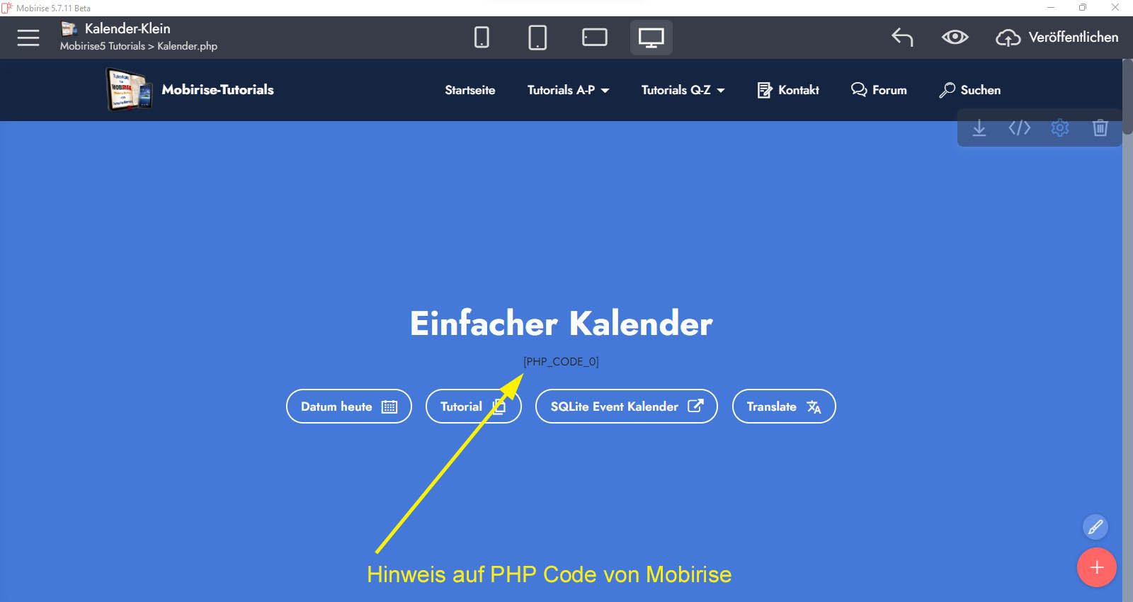 ... und wieso wird dann von Mobirise sogar ein Hinweis auf PHP Code im Block angezeigt. Mobirise hat alle Blöcke und den "Code Editor" auf PHP Code eingerichtet: