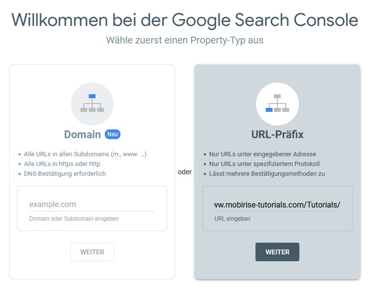 Unter + Property hinzufügen kannst Du einzelne URLs eingeben und alle Unterseiten werden dann entsprechend im Index aufgenommen und das Ergebnis beschrieben.