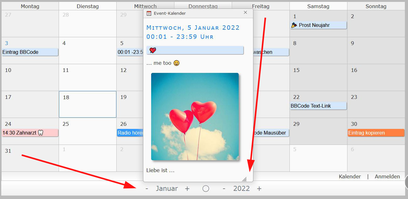 UND im neuen Skript - da verrutscht auch der Eintrag im Kalender nach oben - (Version 18.01.2022) am 18.01.2022: