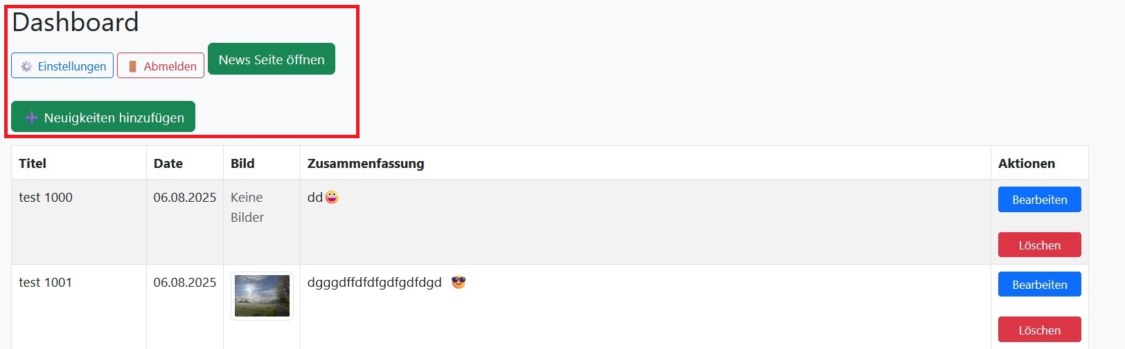 Vorschlag (ist natürlich Geschmackssache), ich habe wie Du oben am Dashboard-Screenshot sehen kannst, den beiden Buttons "Bearbeiten" und "Löschen" eine gleiche Größe verpasst und eine Leerzeile dazwischen. Finde das sieht besser aus.