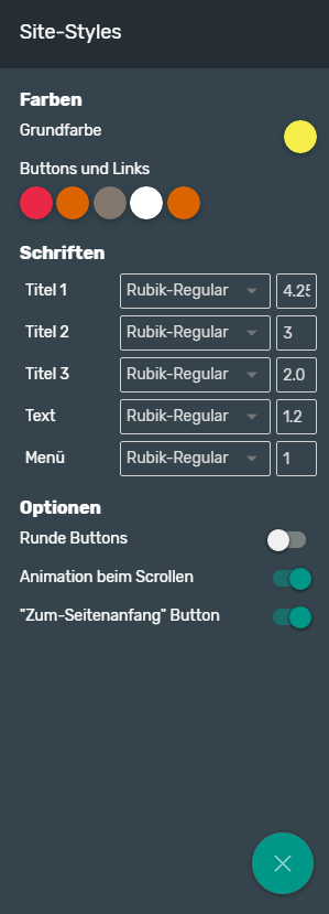 > Klicke auf den Pinsel (unten rechts auf der Arbeitsseite) für den globalen Style
