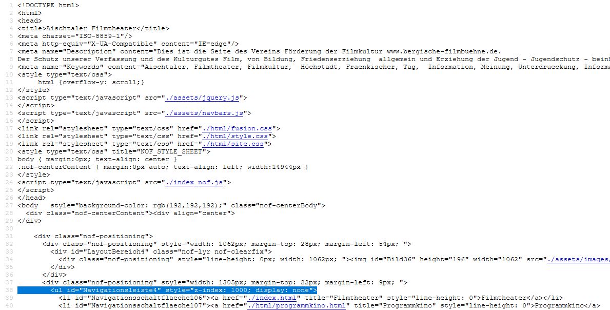 Gelobe Besserung; rechte Maustaste meint auf der Navischaltfläche, um die Eigenschaften aufzurufen. NOF 15 stürzt immer wieder ab. Häkchen ist gesetzt, publiziert und auf display none im CSS CodeEditor gelöscht . Oder muß ein andwere der Möglichleiten markiert werden? Ändert sich aber nichts. Als Du meine Seite gsehen hat, ging es kurzfristig. Unter Filezilla Bearbeiten index aufrufen alles da. Nach dem Hochladen, wieder Navi nicht sichtbar.