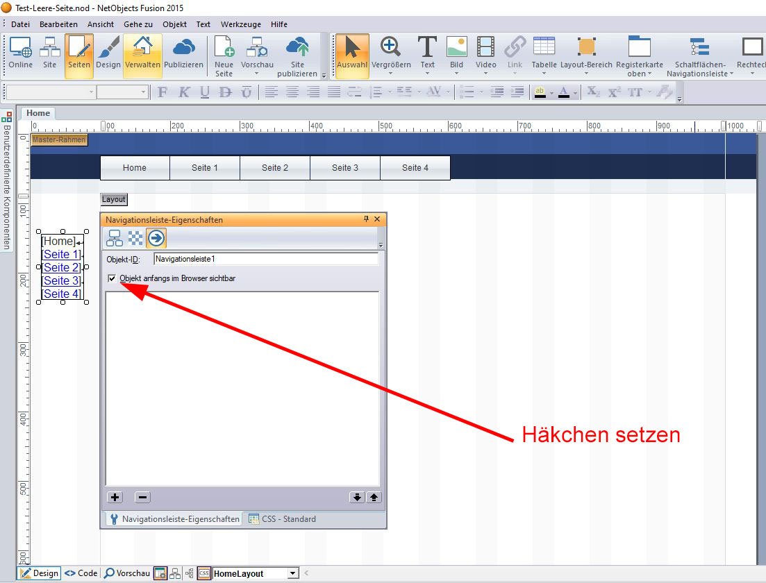 Jetzt musst Du die so wieder eingefügte Navi und Dein Layout noch sicherlich mit der Maus etwas zurecht rücken, damit alles an den gewollten Stellen sitzt.