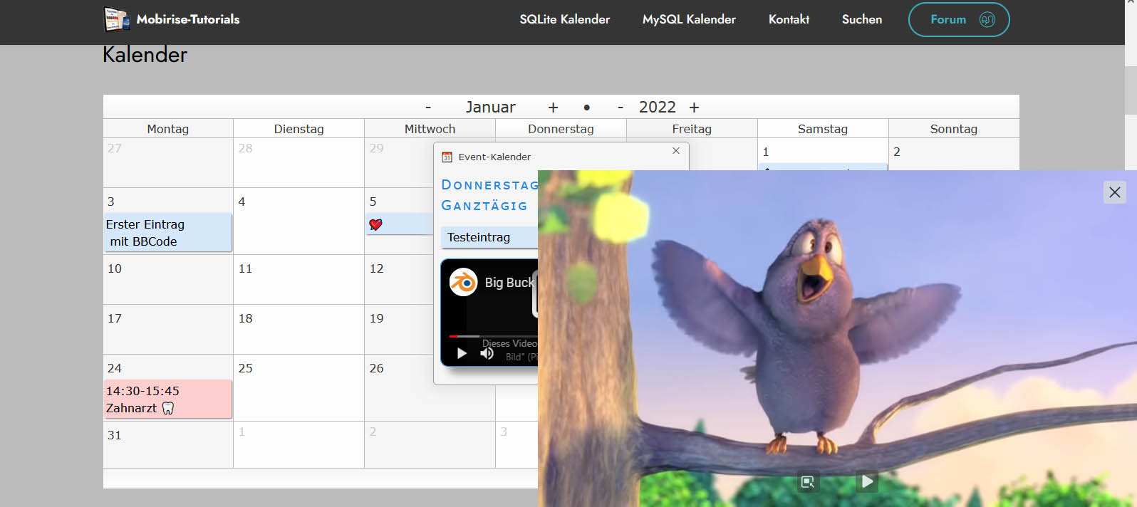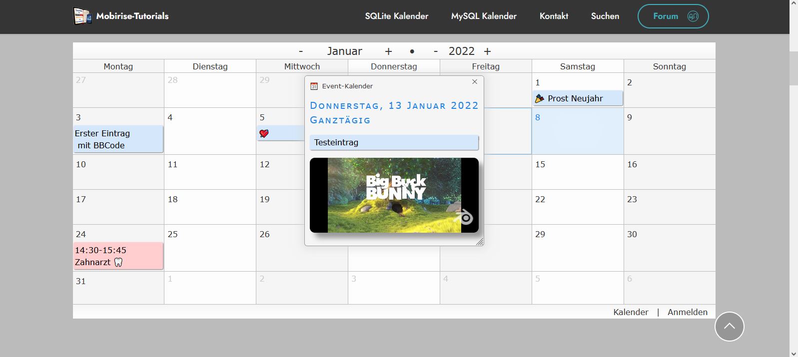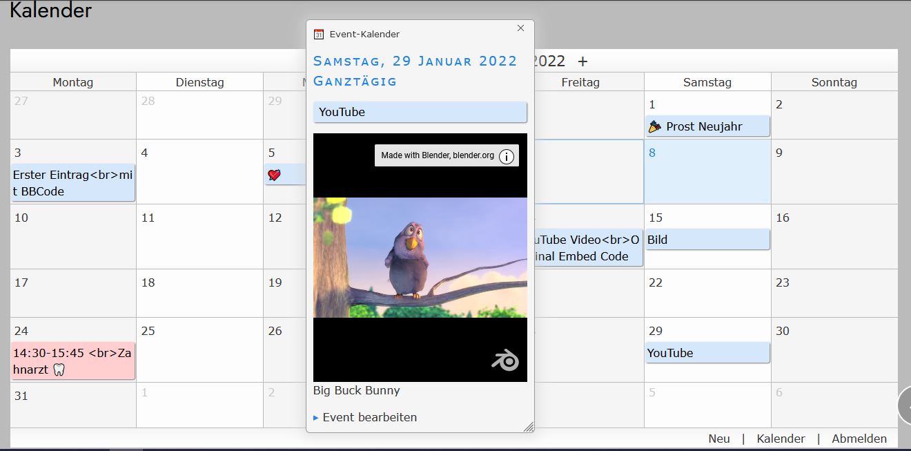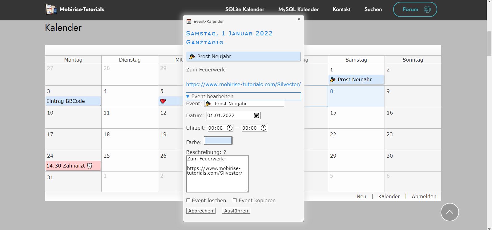 Das alles konnte ich ja auch in meiner Version des MySQL-Kalenders ganz genauso tun: