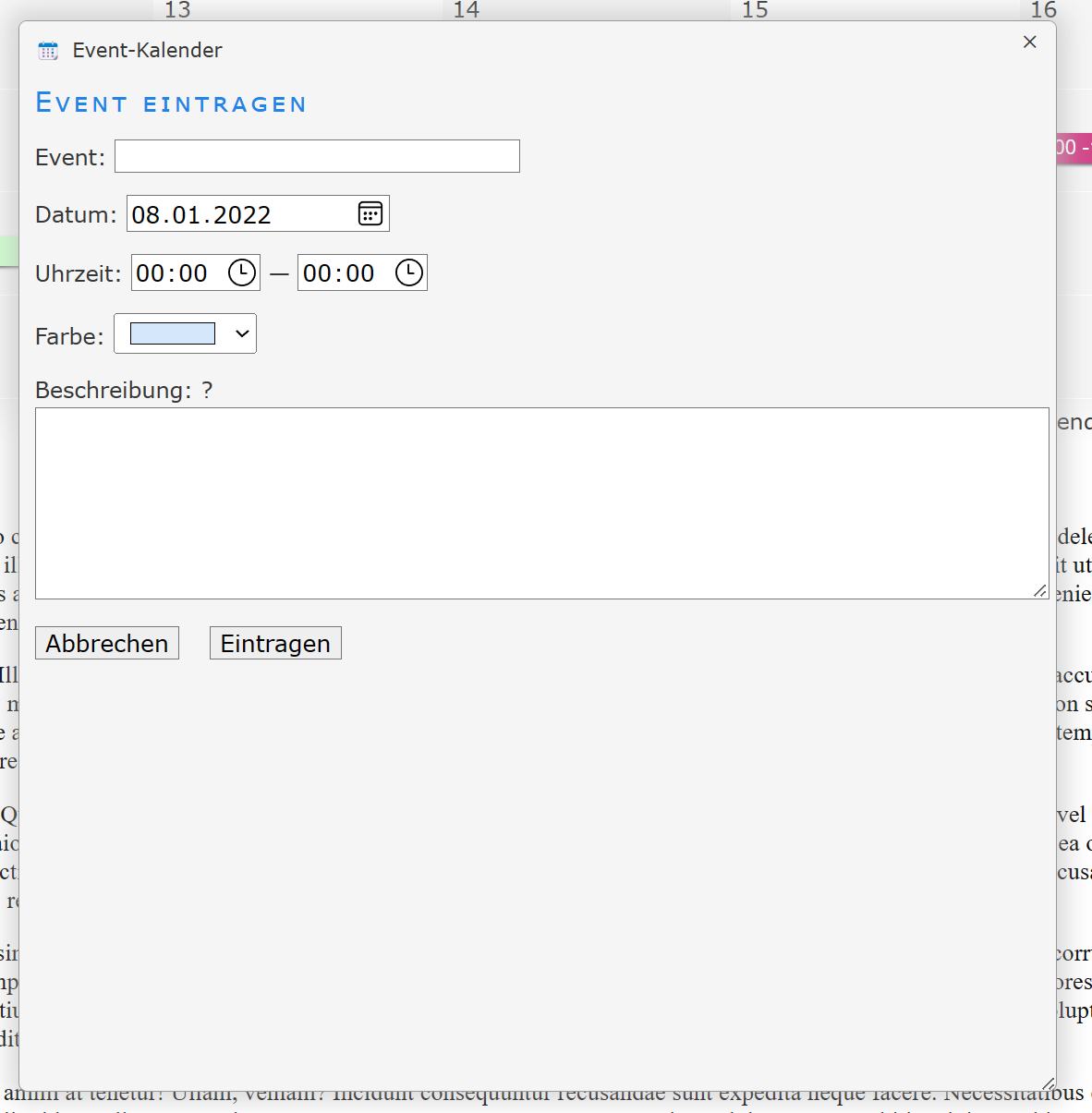 Wenn jemand mit seinem HTML-Code den Editor zerschießt ist das doch sein eigenes Vergnügen. Wer keine einfachen HTML Befehle beherrscht, der muss so etwas ja auch nicht in den Kalender einbauen. Das merkt man ja sehr schnell und kann es auch immer wieder rückgängig machen.