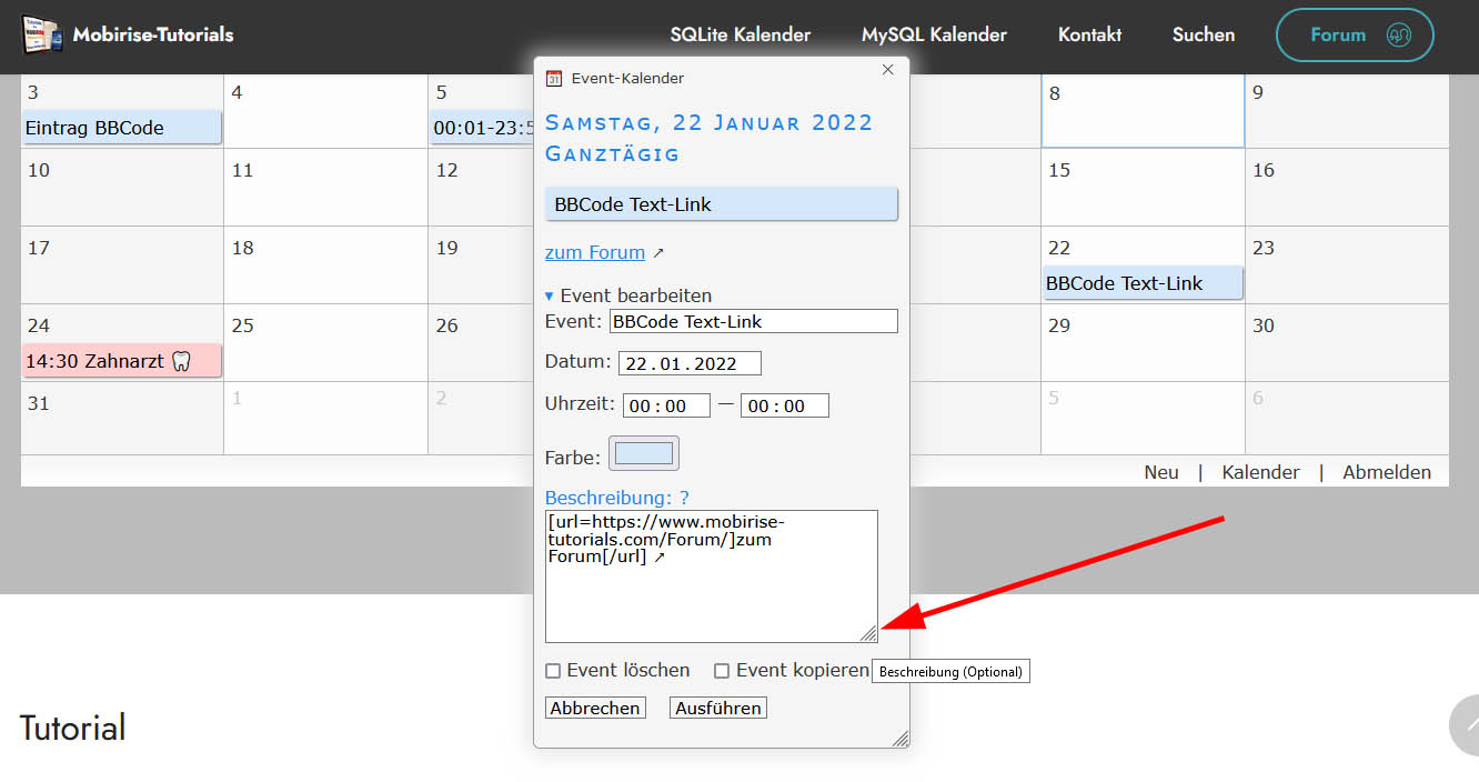 Das finde ich persönlich ganz und gar nicht gut, denn nur der Admin kann das ja machen und ich sehe daher überhaupt keine Gefahr oder Notwendigkeit für diese Einschränkung, die z.B. in einem Forum natürlich vorhanden ist aber doch nicht in einem Editor, an den nur eine einzelne Person, nämlich der Inhaber des Kalender gelangen kann.