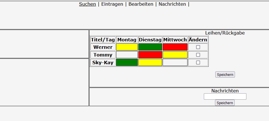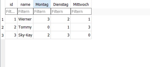 Die Inhalte dieser Tabelle Namen oder Tage sind nur Beispiele, die Tabelle soll wie ein Eintrag in die Datenbank behandelt werden.