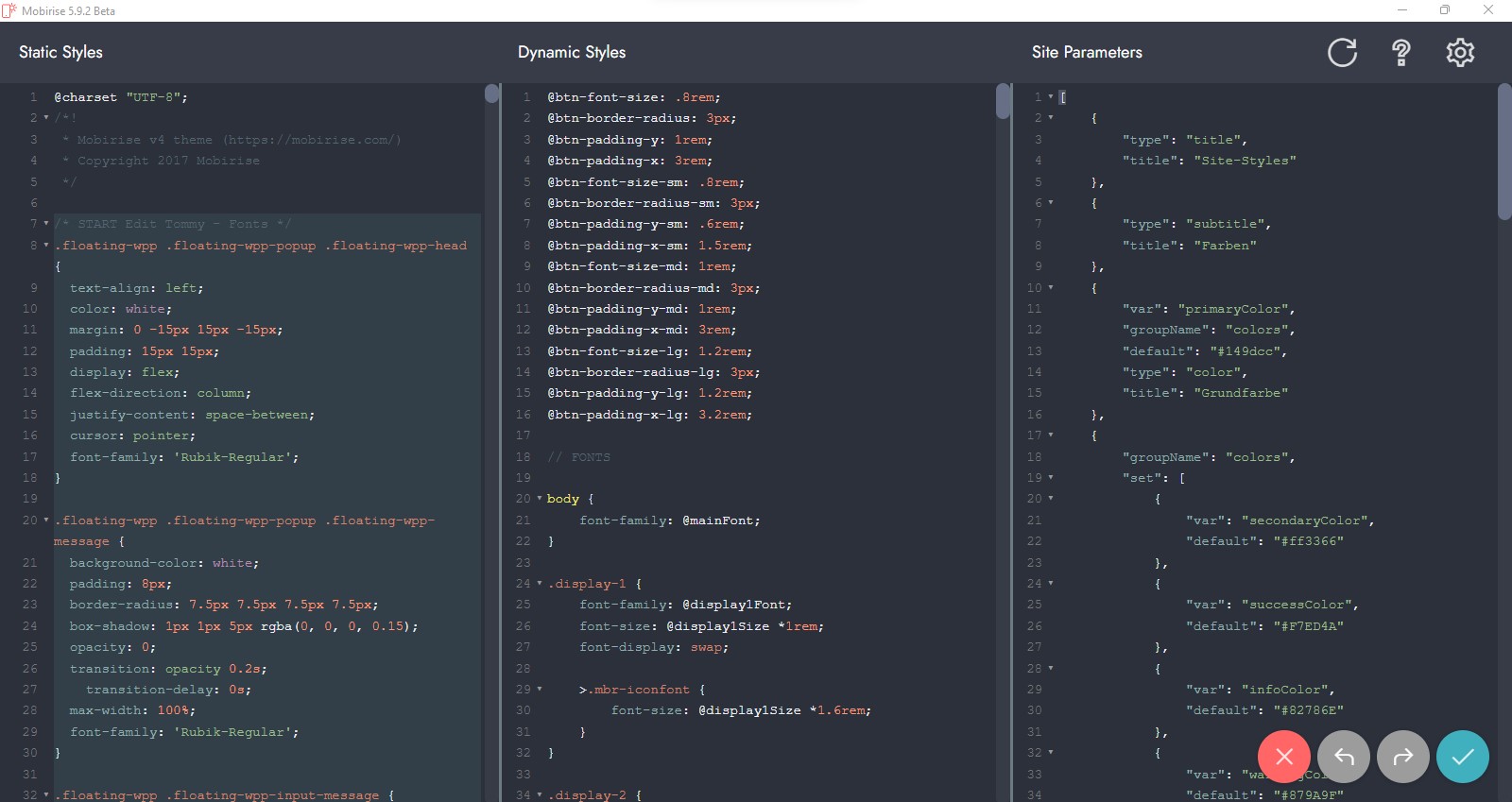 Natürlich muss die neu gewählte Schrift auch bereits über die CSS-Datei Deines Mobirise-Projektes vom Browser geladen worden sein. Sicherlich ist es dann der einfachste Weg eben den Schrifttyp zu wählen, den Dein Projekt bereits verwendet (wie bei mir eben "Rubik").