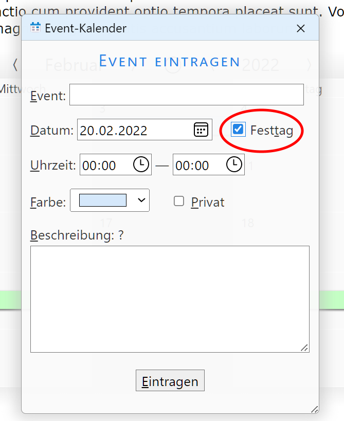Checkbox (Festtag) - Ein fester Tag im Jahr, für Geburtstage, Feiertage etc. (optional).
