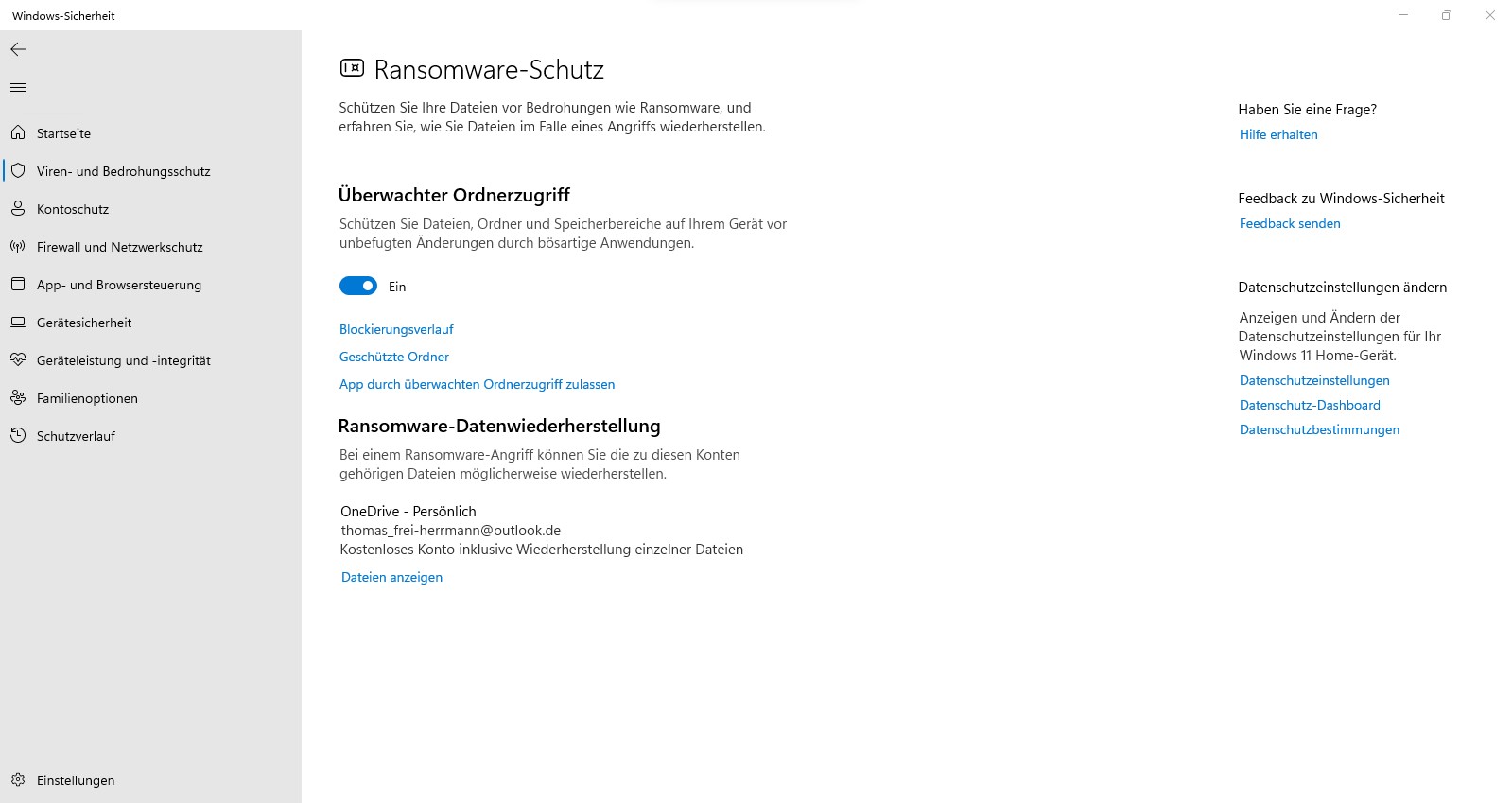 Das Windows nicht das gesamte Laufwerk schützt liegt mit Sicherheit an der Option der One Drive Sicherung. Das würde mit dem Standard Speicher ja niemals klappen. Anderseits liegen meine wichtigen Dateien aber verteilt auf den Laufwerken. Wie z.B. Rechnungen, Lieferscheine usw.Microsoft Certified Systems Engineer