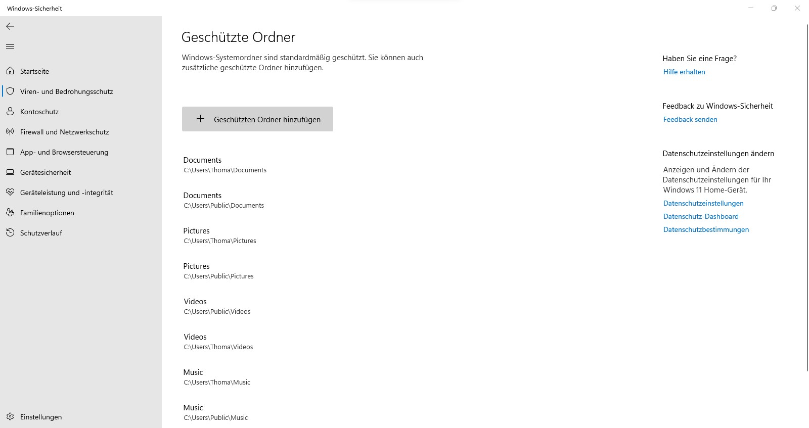 Werksmäßig sind nur die Eigenen Ordner Dokumente, Musik, Bilder usw. geschützt.Tommy Herrmann hat geschrieben: Fr 15. Dez 2023, 11:52 Wieso ist das nicht leicht nachvollziebar - keine Ahnung was Du meinst ...