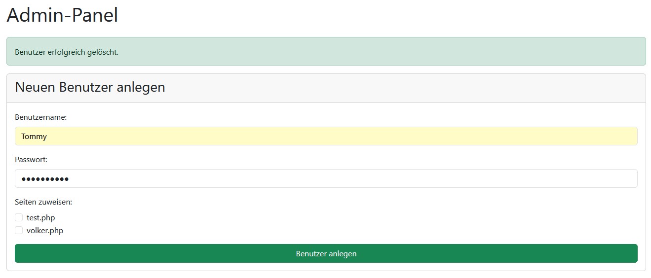 Re: Benutzer Verwaltung mit Seiten Zugriff