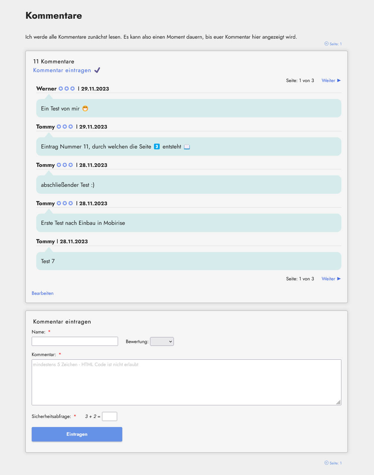 ... und hier mein SQLite-Gästebuch (transportable Textdatei) vom Werner mit Tutorial zum Einbau in Mobirise: