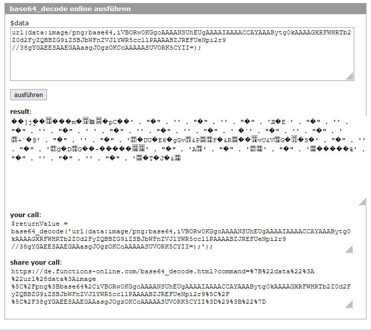 Base64 Decoder - Es sollten allerdings nur kleine Bilder verwendet werden, der Webserver braucht lange bis das Bild kodiert ist.