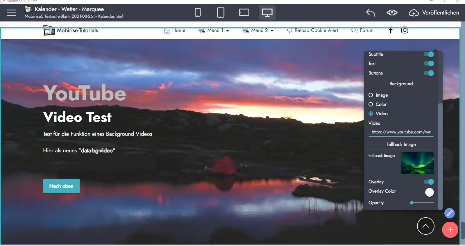 Sollte das Video nicht geladen werden können, hat Mobirise dafür das "Fallback Image" geschaffen, welches Du in den Block-Einstellungen angeben kannst:
