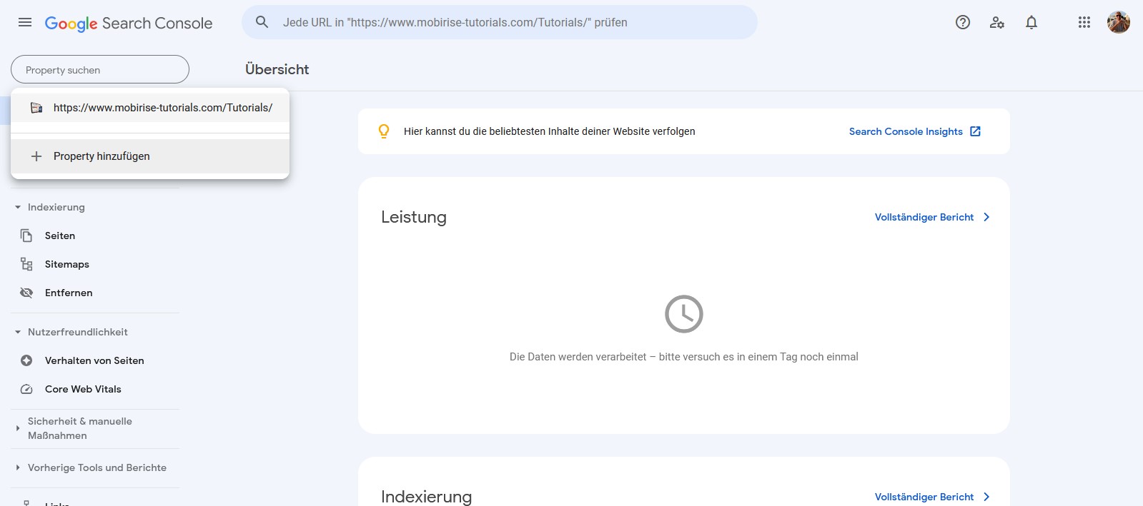 Website-Property zur Search Console hinzufügen"