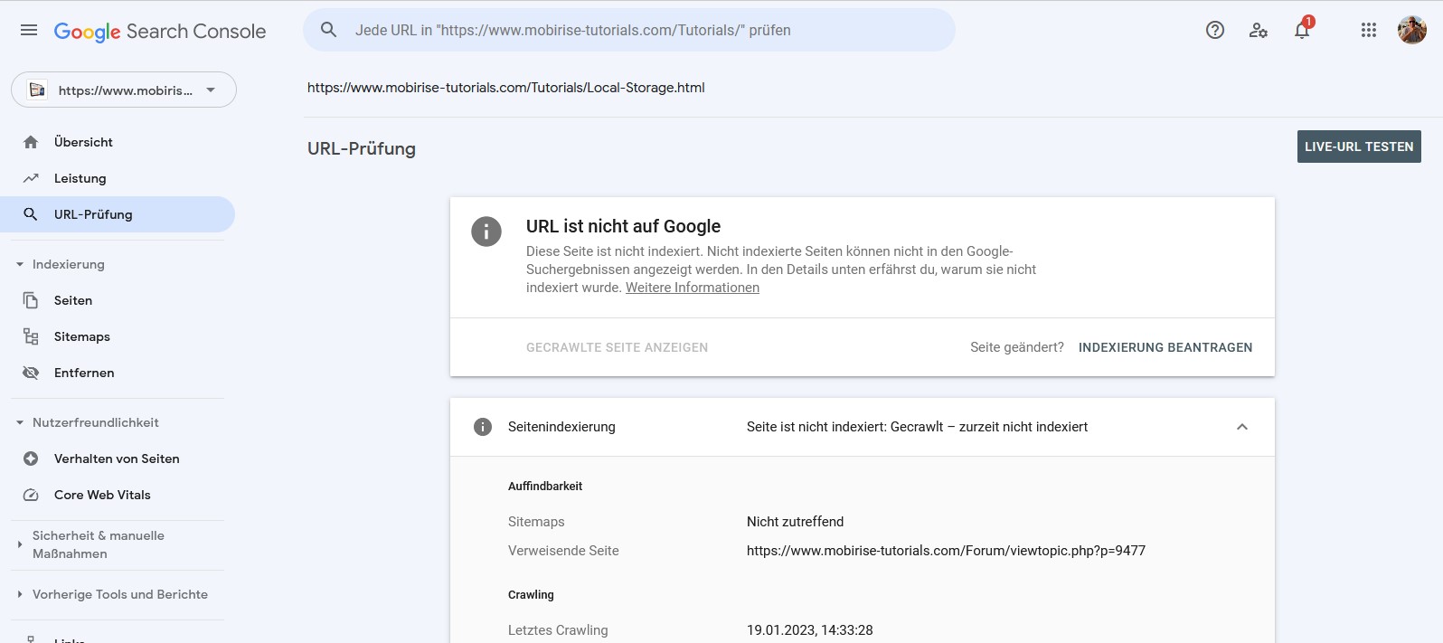 + Property hinzufügen kannst Du einzelne URLs eingeben und alle Unterseiten werden dann entsprechend im Index aufgenommen und das Ergebnis beschrieben.