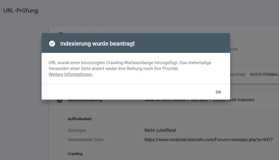 ... an dieser Adresse konnte man dann direkt einfach die URL eingeben und wenige Stunden später (manchmal nur 5 Minuten) war diese dann von Google indexiert.