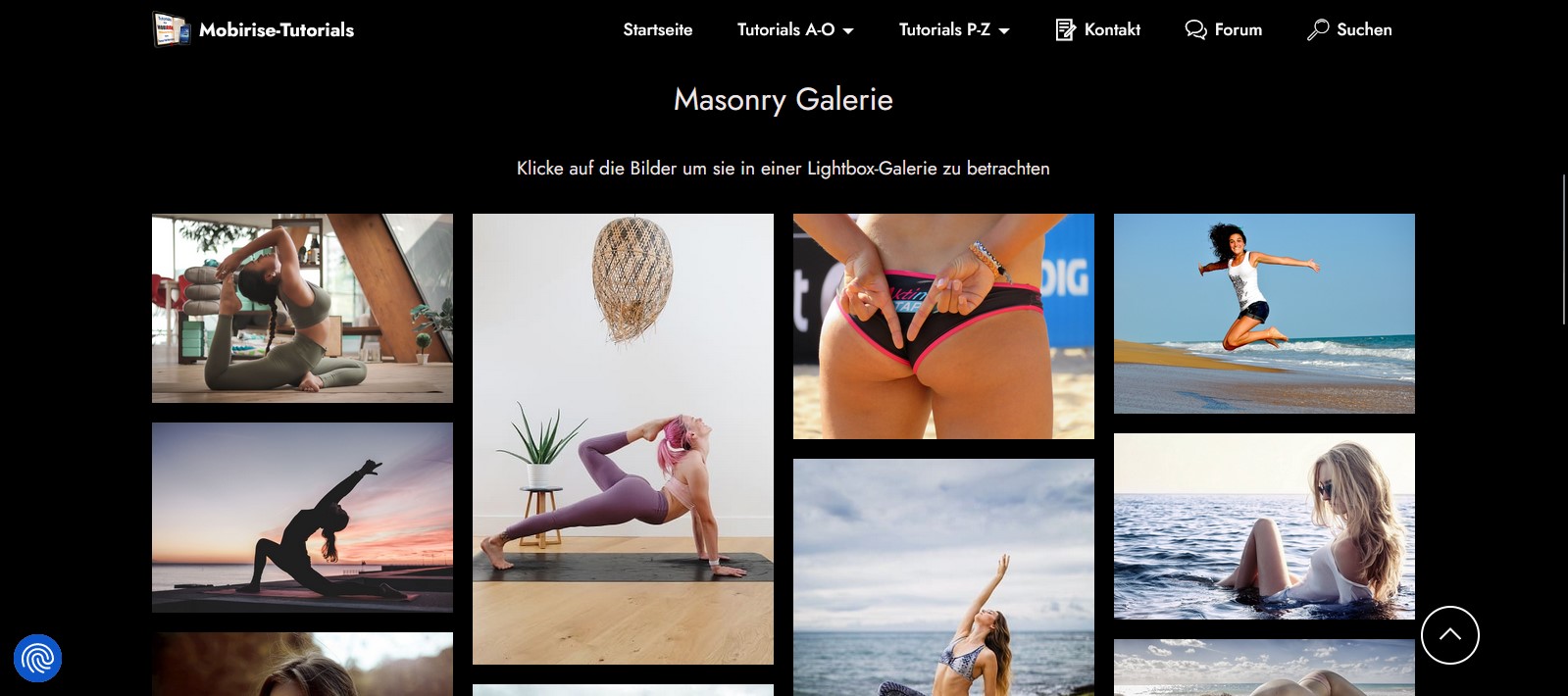 Ich habe jetzt mein Tutorial zu dieser "Masonry & Lightbox" (Mauerwerk) Galerie erstellt und es funktioniert (denke ich) an allen Geräten sehr gut.