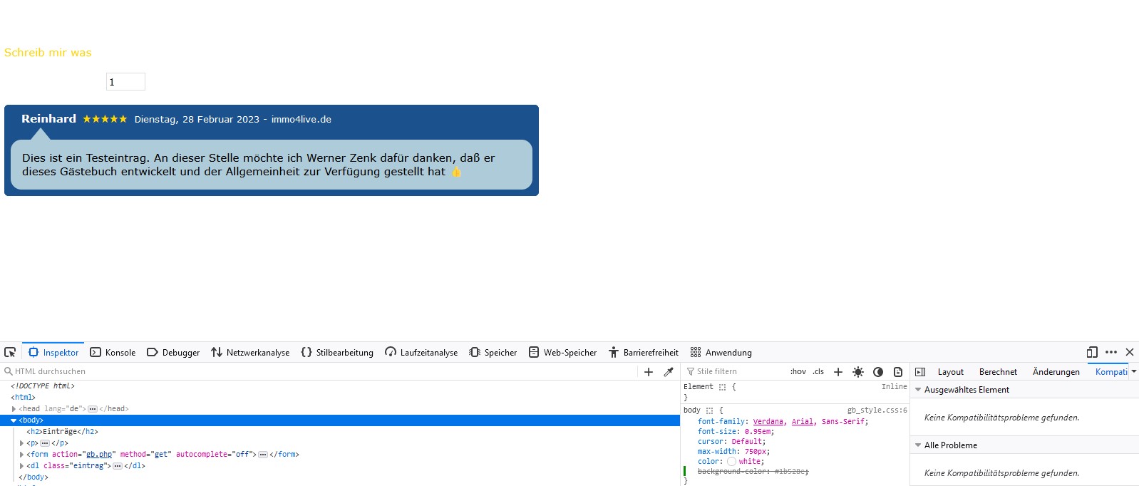 Nachtrag: Hat funktioniert https://www.immo4live.de/gaestebuch.html