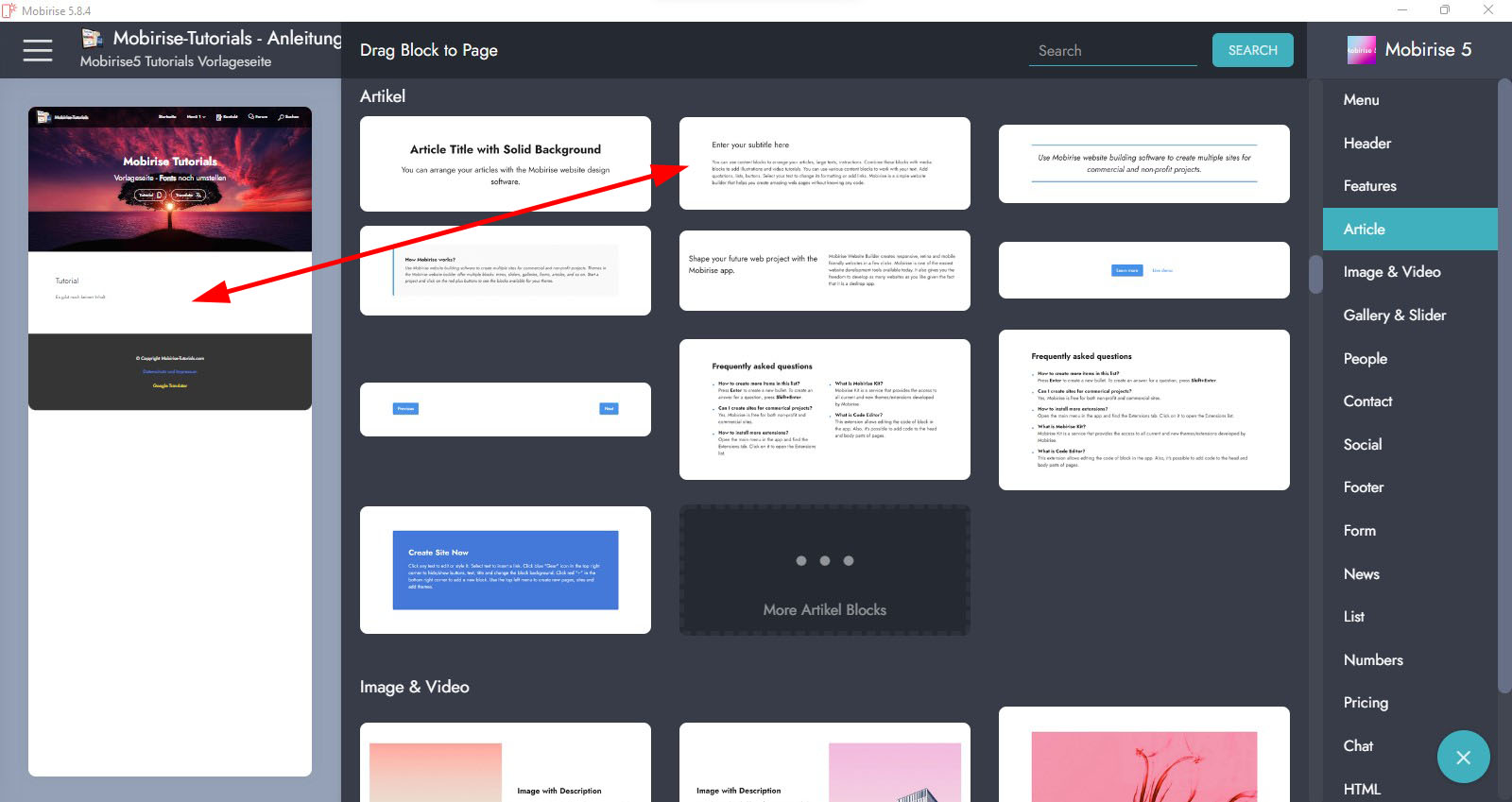 Ich habe hier als Beispiel einen ganz einfachen Text-Block aus der Rubrik "Article" verwendet: