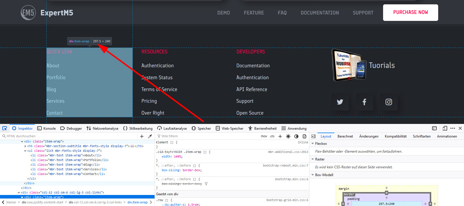 Dann habe ich die class="col-lg-3" auf 20% Breite (von 25%) im Bereich "CSS Editor" gesetzt: