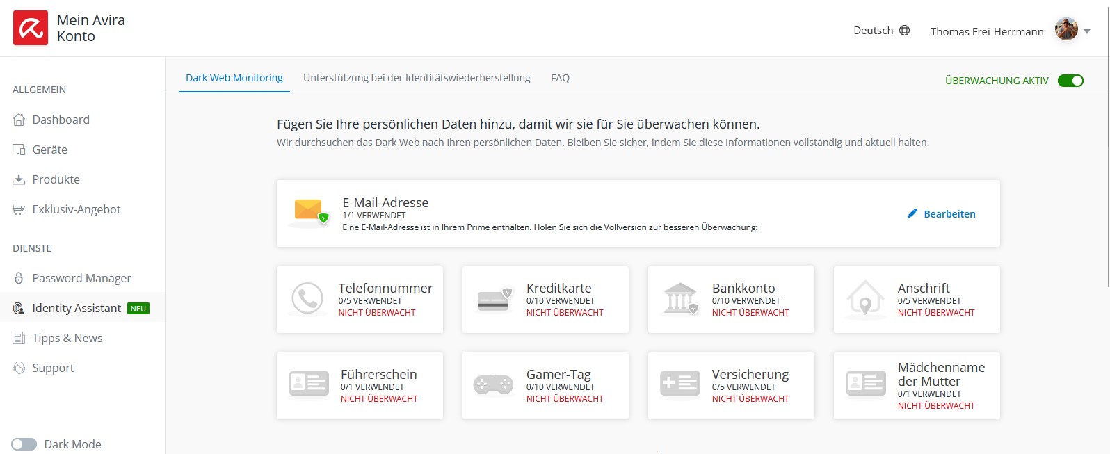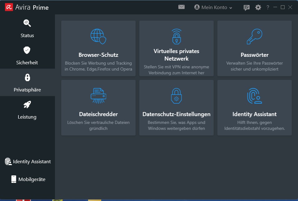 Man kann quasi alle Sicherheitsoptionen selbst einstellen. Browserschutz, VPN und Passwörter können verwendet werden und die eigene Identität kann ständig überwacht werden, wie z.B. die E-Mail Adressen.