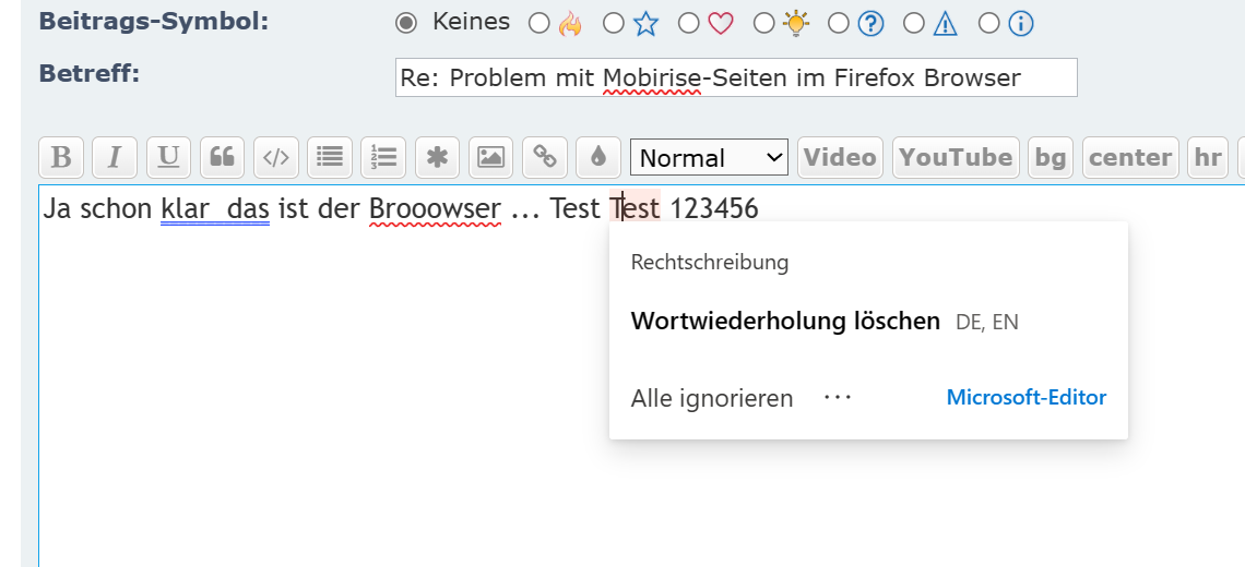 Das Forum selbst hat übrigens keine Rechtschreibprüfung installiert - das muss dann also Dein Browser sein, der das prüft weil diese Prüfung aktiviert ist.