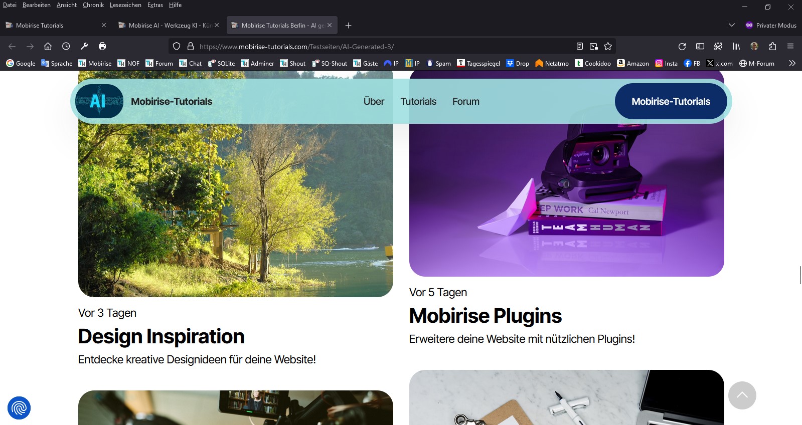 Ich habe eine weitere Testseite mit der aktuellen Version von "Mobirise AI" erstellt: