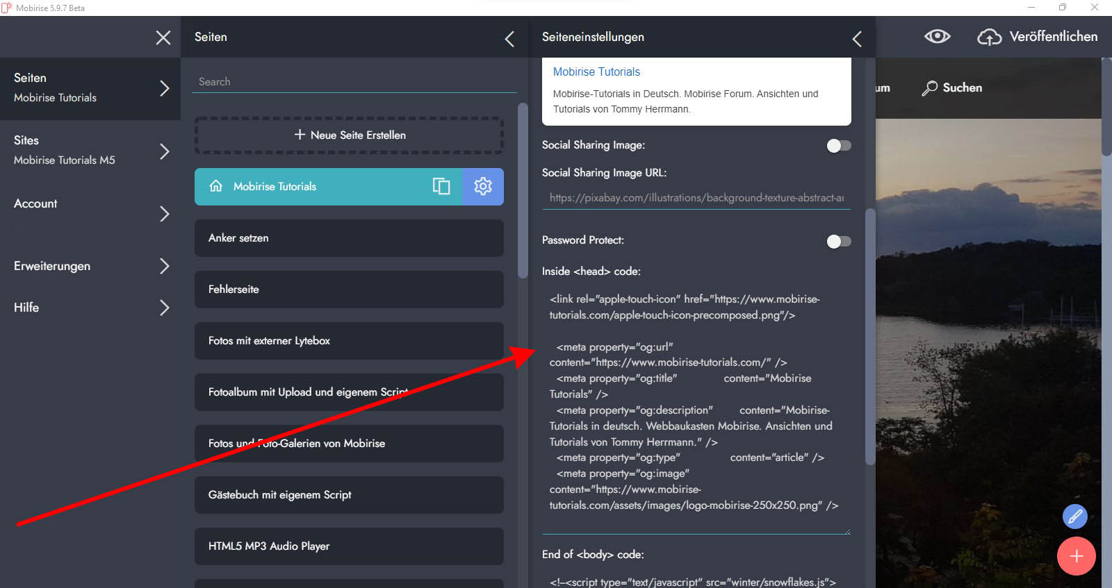 wenn man die Meta Tags ändern möchte, z.B. um Keywords einzufügen oder andere Infos, wie geht man bei Mobirise am besten vor? Denn ich konnte gar keinen Menüpunkt finden, wo ich das eingeben kann.