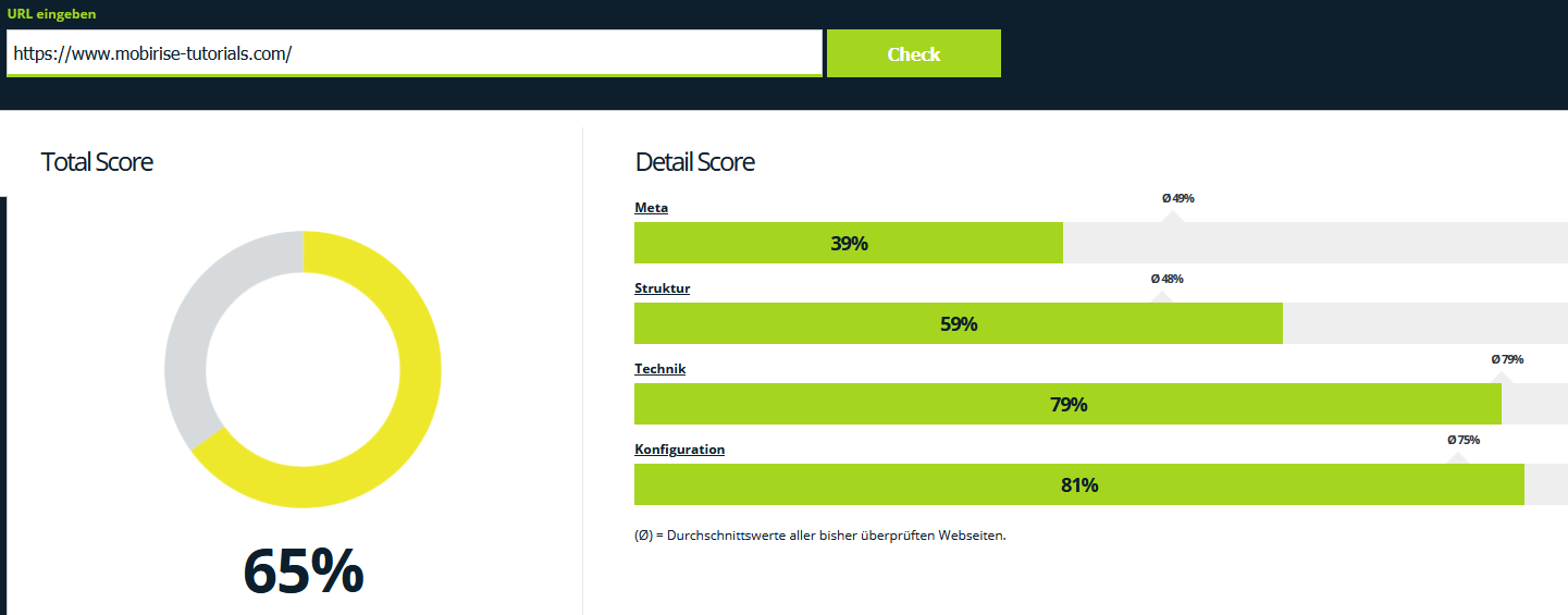 Deine Beispielseite ist eine Webseiten-Agentur, die genau mit solchen Sachen ihr Geld verdient - was meinst Du wohl warum dort jeder Test negativ ausfallen wird?