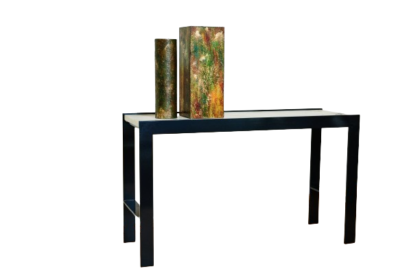 Hier hat z.B. ein Fotograf recht gute Bilder gemacht, aber er hat keinen eigenen Hintergrund benutzt, dass hier jetzt ein ganz billiger Laminatboden zu sehen ist. Sehr unpassend, da die Kunstwerke ab 10000.- Euro kosten sollen.