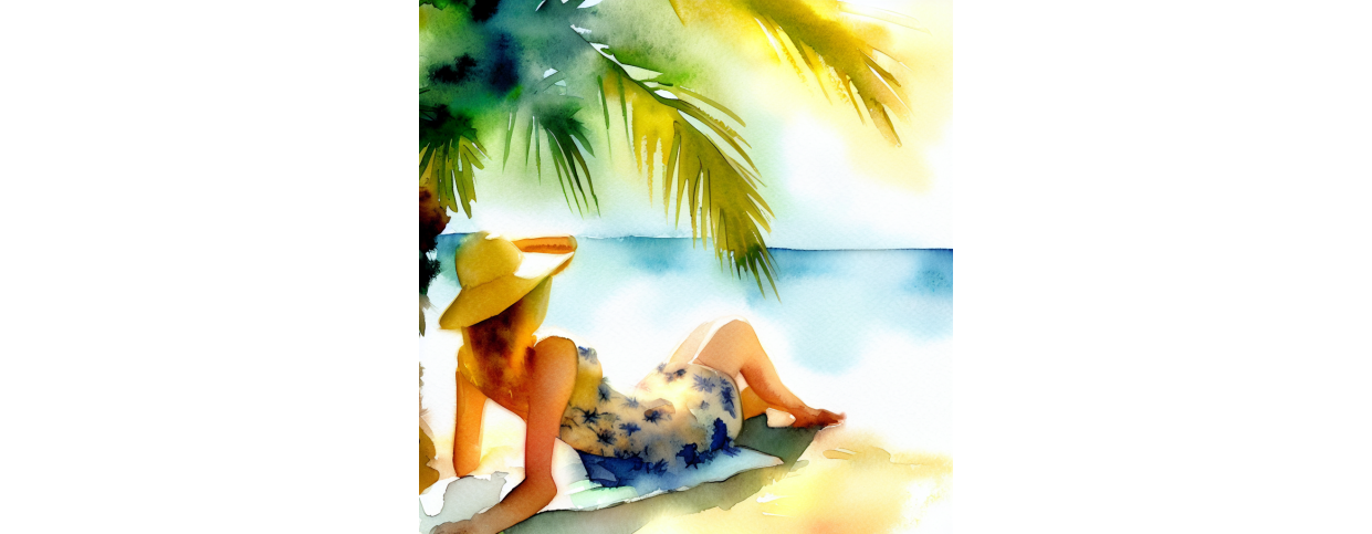 Frau liegt am Strand in der Sonne(Thema: Aquarell)