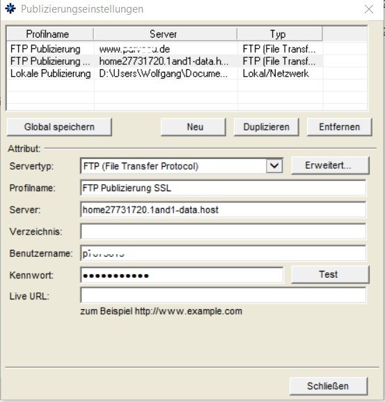 Ich habe aufgrund Deines letzten Beitrages hier, nochmals eine entfernte Publizierung zum Server von "IONOS" mit den alten FTP-Einstellungen und Port: 21 mittels NOF vorgenommen, um das erneut zu testen und siehe da - es geht