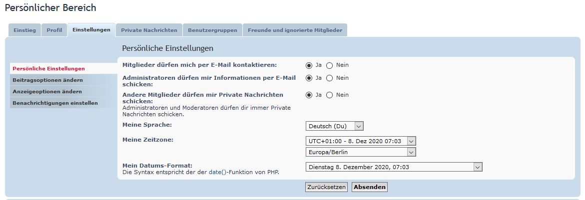 Nach der Registrierung und Anmeldung findest Du Deinen User-Namen oben rechts. Klicke auf: