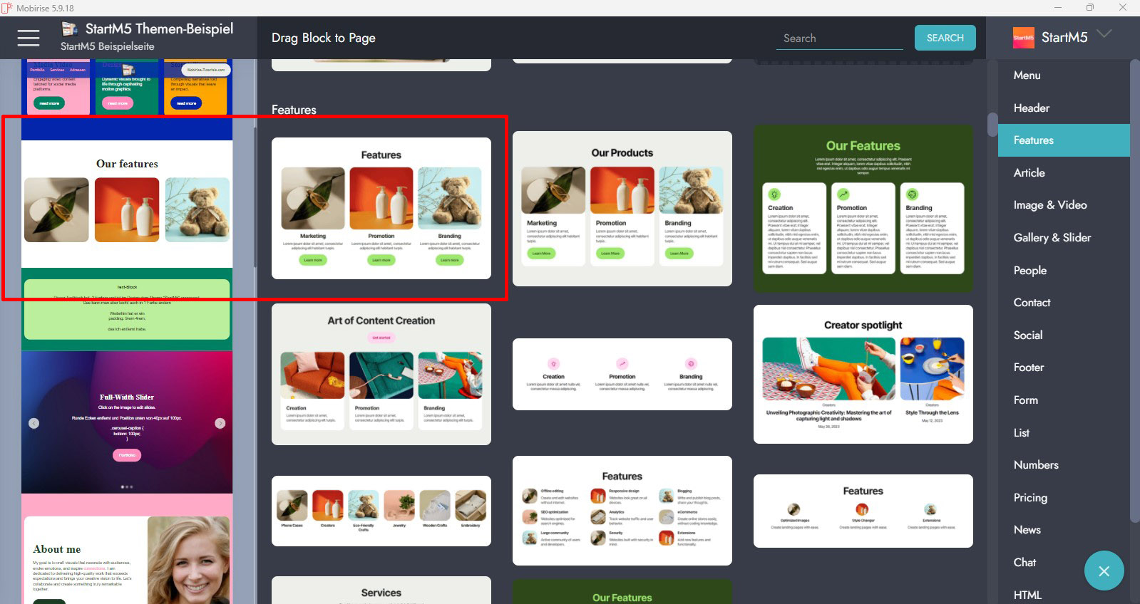 Das ist ein ganz normaler Features Block aus StartM5.
