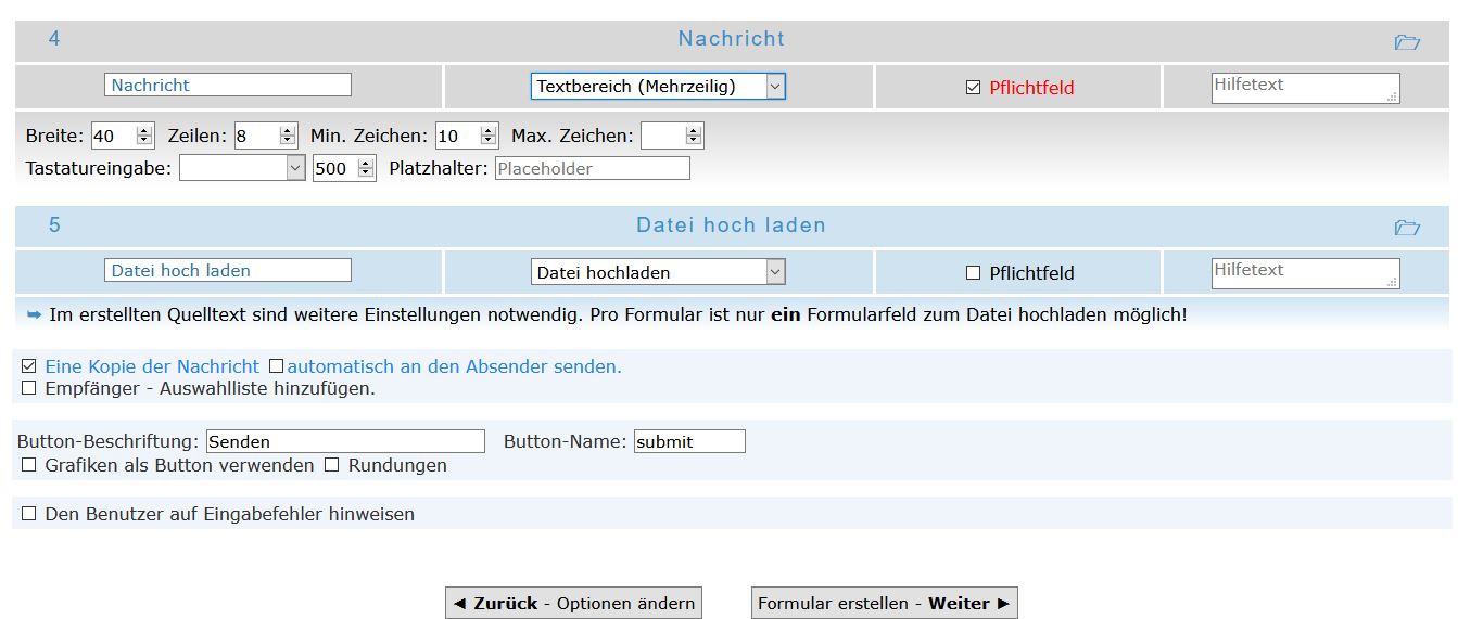 Dabei kannst Du via Skript angeben wie groß die sein dürfen und welches Dateiformat erlaubt ist. Hier habe ich Test-Formular erstellt: