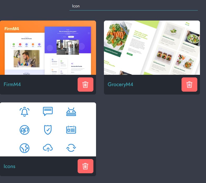 1) klicke auf den roten Papierkorb an der Kachel "Icons" und deinstalliere dieses Erweiterung damit