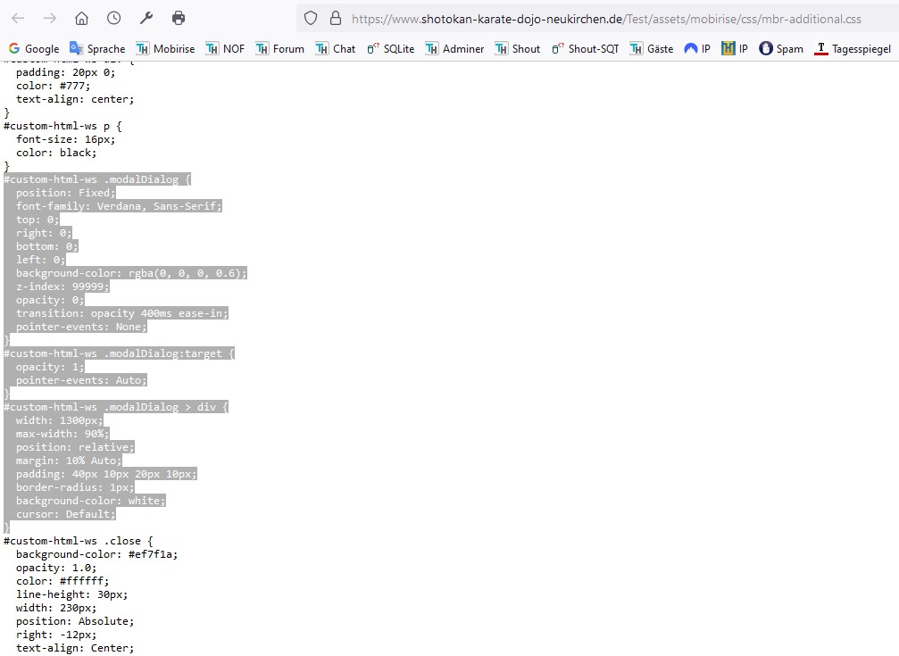 ich arbeite doch mit eine uralten Version von Mobirise 4.12.4 . Viel passiert ja auch nicht mehr auf der Vereinsseite - mal den einen oder anderen Termin oder mal eben was reparieren wenns warum auch immer nicht mehr funktioniert. Bin mit der Version eigentlich super klargekommen. Da gibts denke ich den Alert nicht. Hat ja eigentlich auch prima mit dem Modal funktioniert.