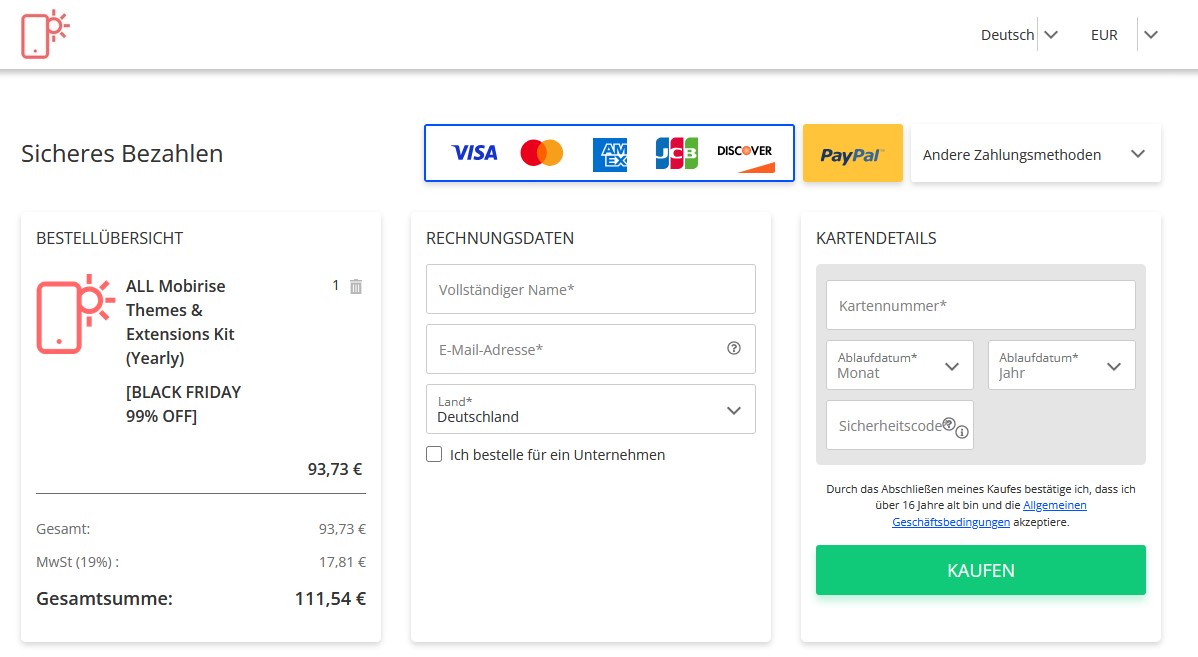 Der "Code Editor" ist eine Erweiterung von Mobirise, die man käuflich erwerben muss. Man kann diesen einzeln erwerben oder im Paket, was natürlich der einzig ratsame Kauf ist, da einzeln extrem teuer mit USD 69,00. Man erwirbt aber immer nur eine Jahreslizenz, die man jedes Jahr neu bezahlen muss.