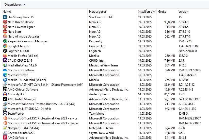 Am 13.03.25 wurden von Windows die üblichen Updates installiert: